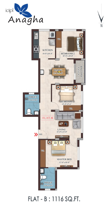 ICIPL Anagha, is a refined blend of thoughtfully designed 2 and 3BHK premium apartments, created to offer a safe, comfortable, and elegant living experience. Size is starting from 941 sq.ft onwards.